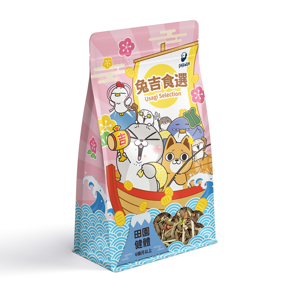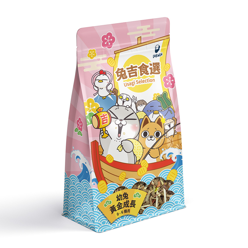- 添加了黃金三種實體牧草,訓練幼兔吃草草,柔軟的黑麥草搭配有韌性的苜蓿草滿足幼兔磨牙與挑食的口感需求。燕麥片與碗豆片提供了幼兔非常需要的澱粉與植物性蛋白,是長肉神器。