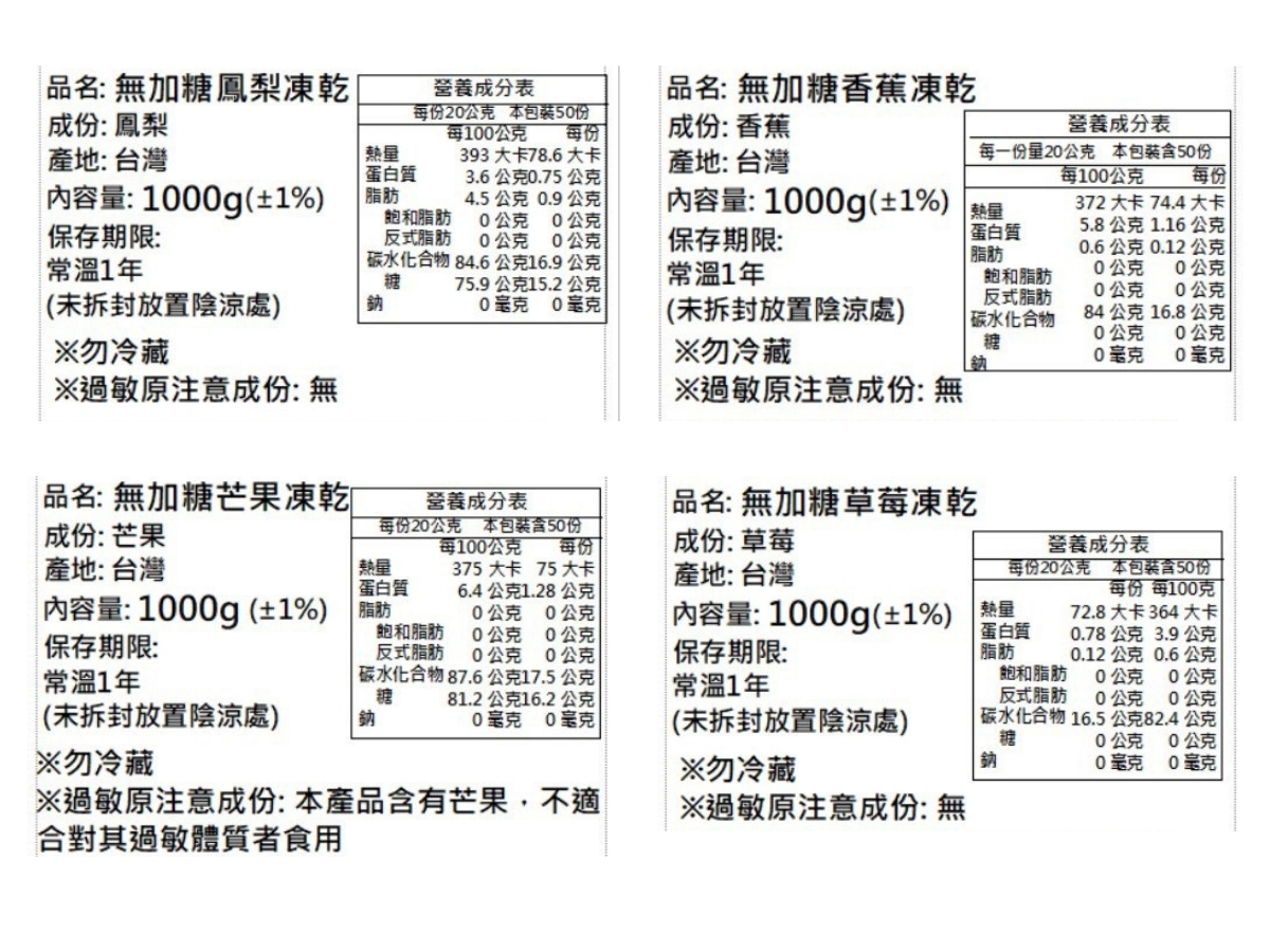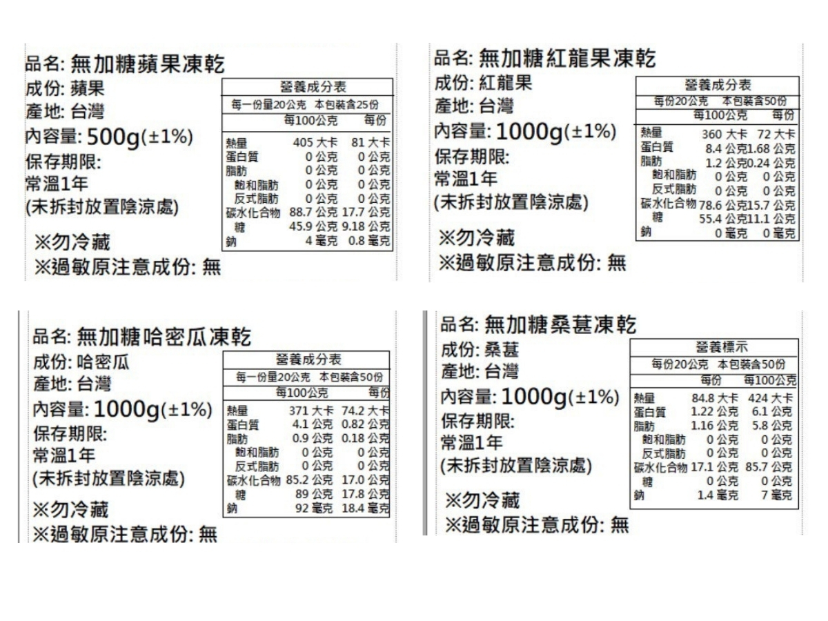 • 天然聲明:水果乾為天然農產品,會因氣候、產地、熟成度不同,而使每批成品的色澤、口感略有差異,此為正常現象。